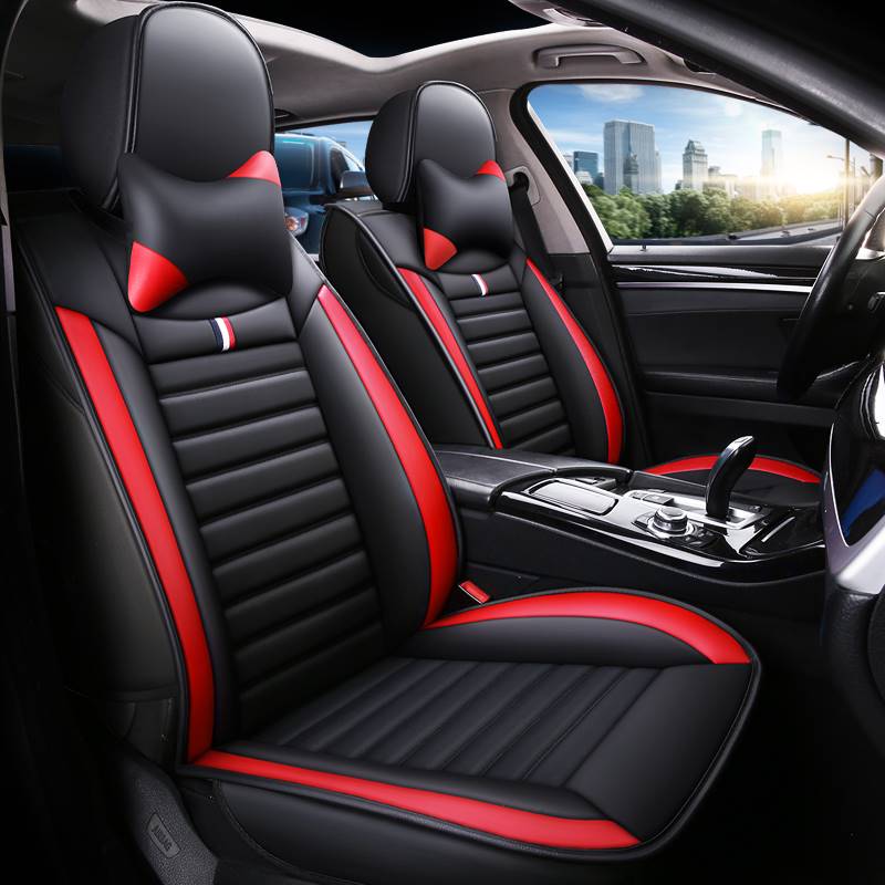 Black – Red PVC Leather Seat Covers: Universal Fit, Bonus Accessories Included!