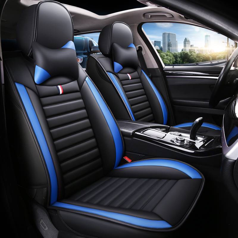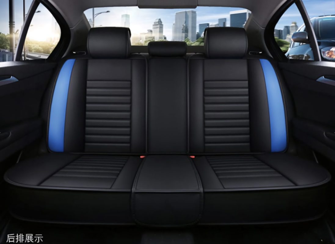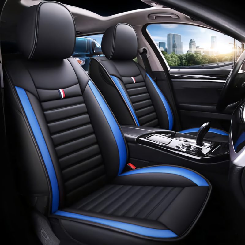 Black – Blue PVC Leather Seat Covers: Universal Fit, Bonus Accessories Included!