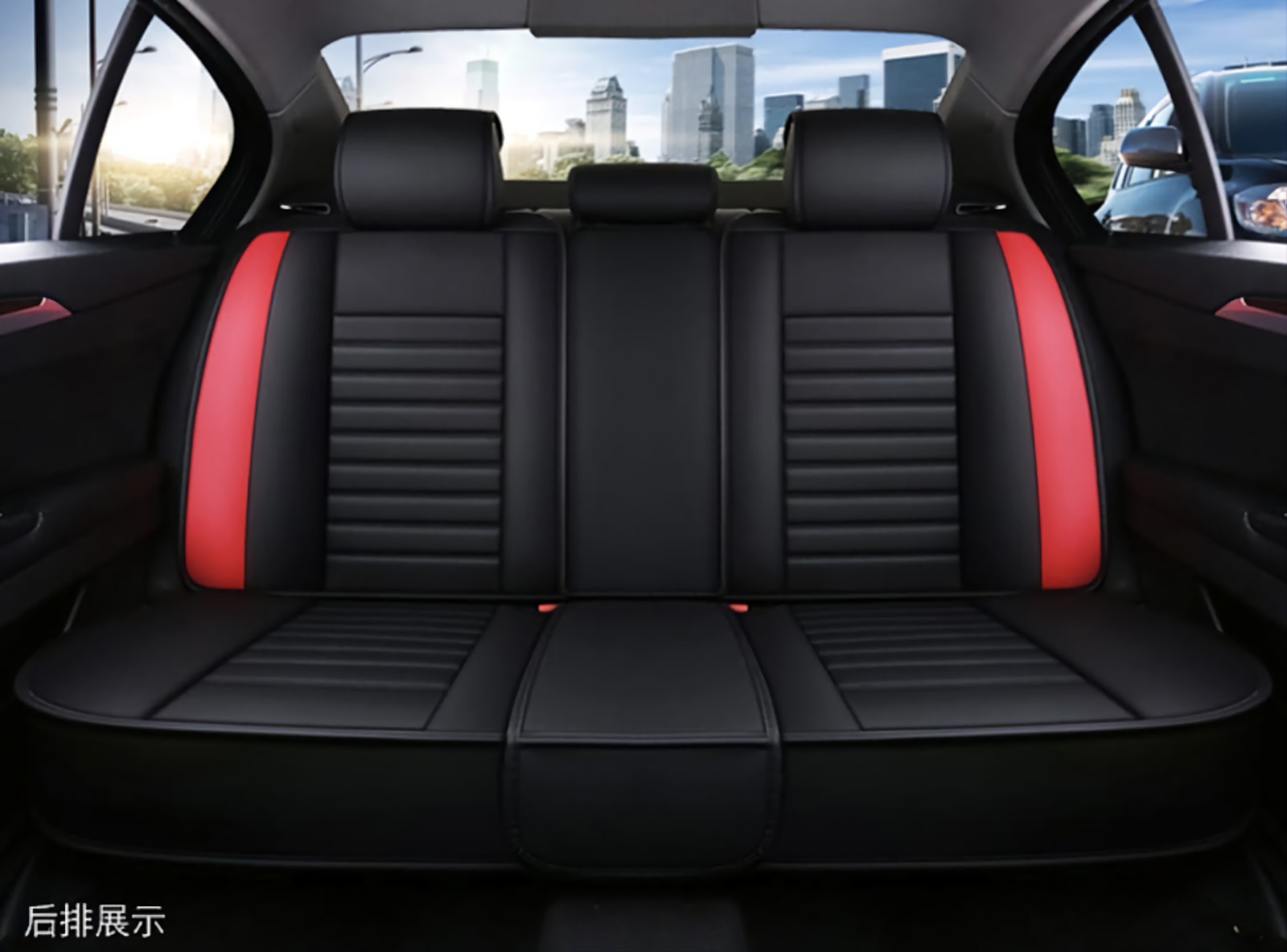 Experience style and durability with Autoxtra’s Black – Red PVC Leather Seat Covers.